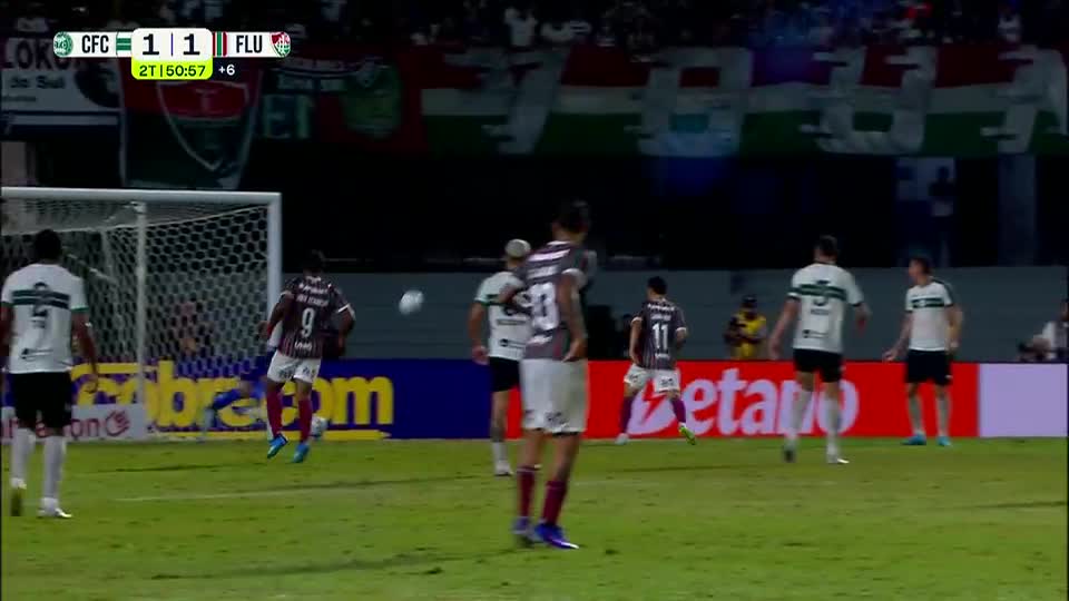 Cano sobe mais alto que a zaga do Coritiba e quase marca para o Fluminense no último lance