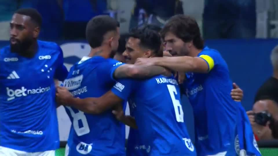 Atacante tabela com lateral, chuta da meia lua e ainda acerta a trave direita antes de colocar o cruzmaltino novamente à frente contra o Cruzeiro