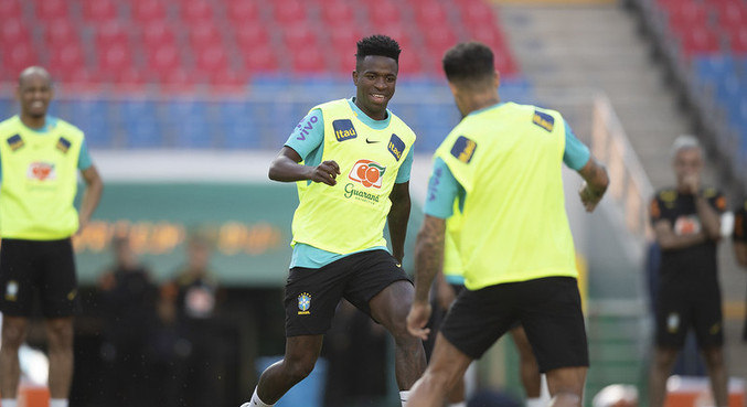 Tite, técnico da seleção brasileira confirmou, após o treino de domingo (5), a entrada de Vini Jr. na equipe titular. O atacante do Real Madrid vai entrar na vaga de Richarlison, enquanto Neymar deve atuar mais centralizado.