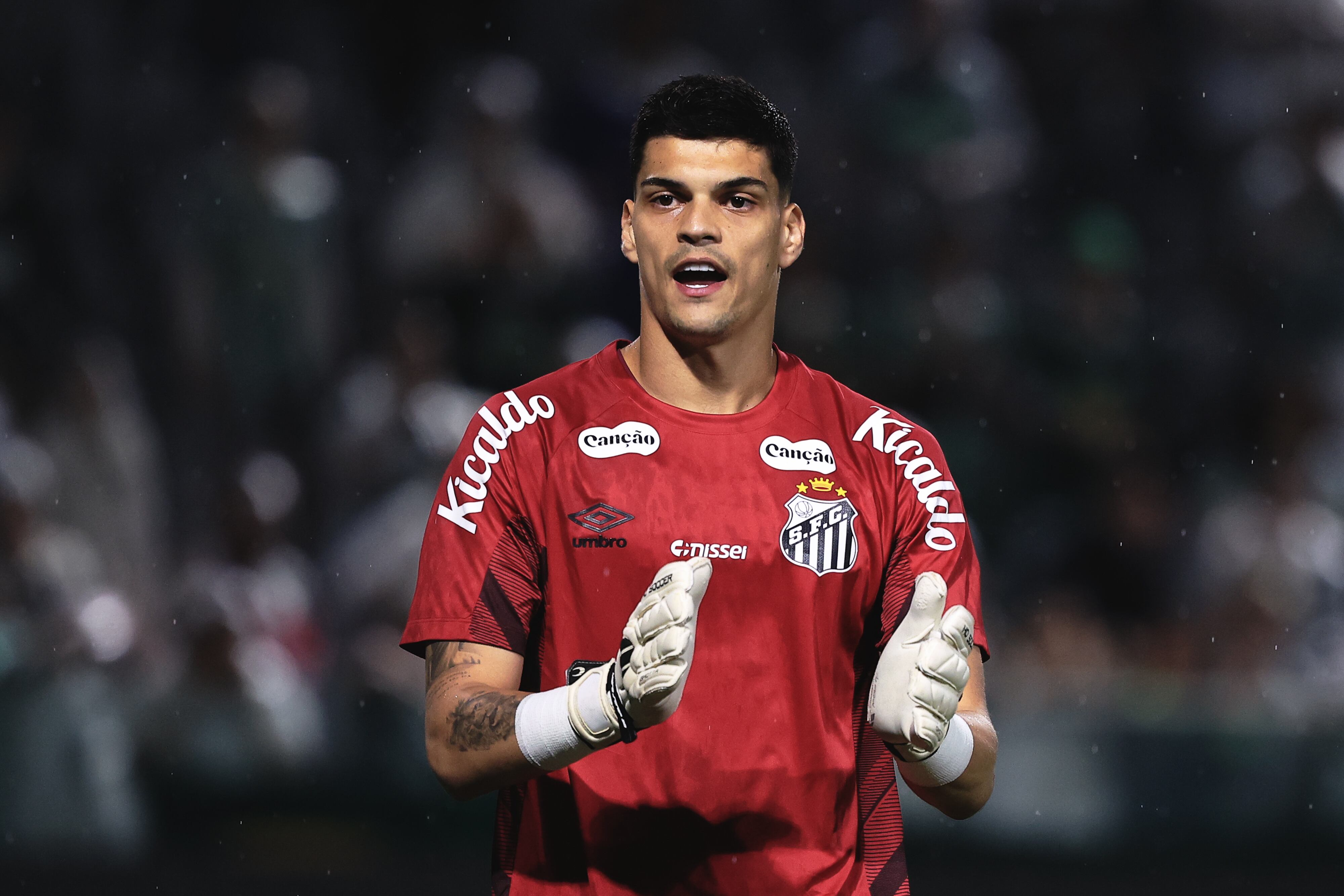 O goleiro do Santos, Gabriel Brazão, conversou com jornalistas na zona mista após a derrota por 1 a 0 para o Palmeiras, na última quarta-feira (14), na Arena Barueri, pela segunda rodada do Campeonato Paulista.