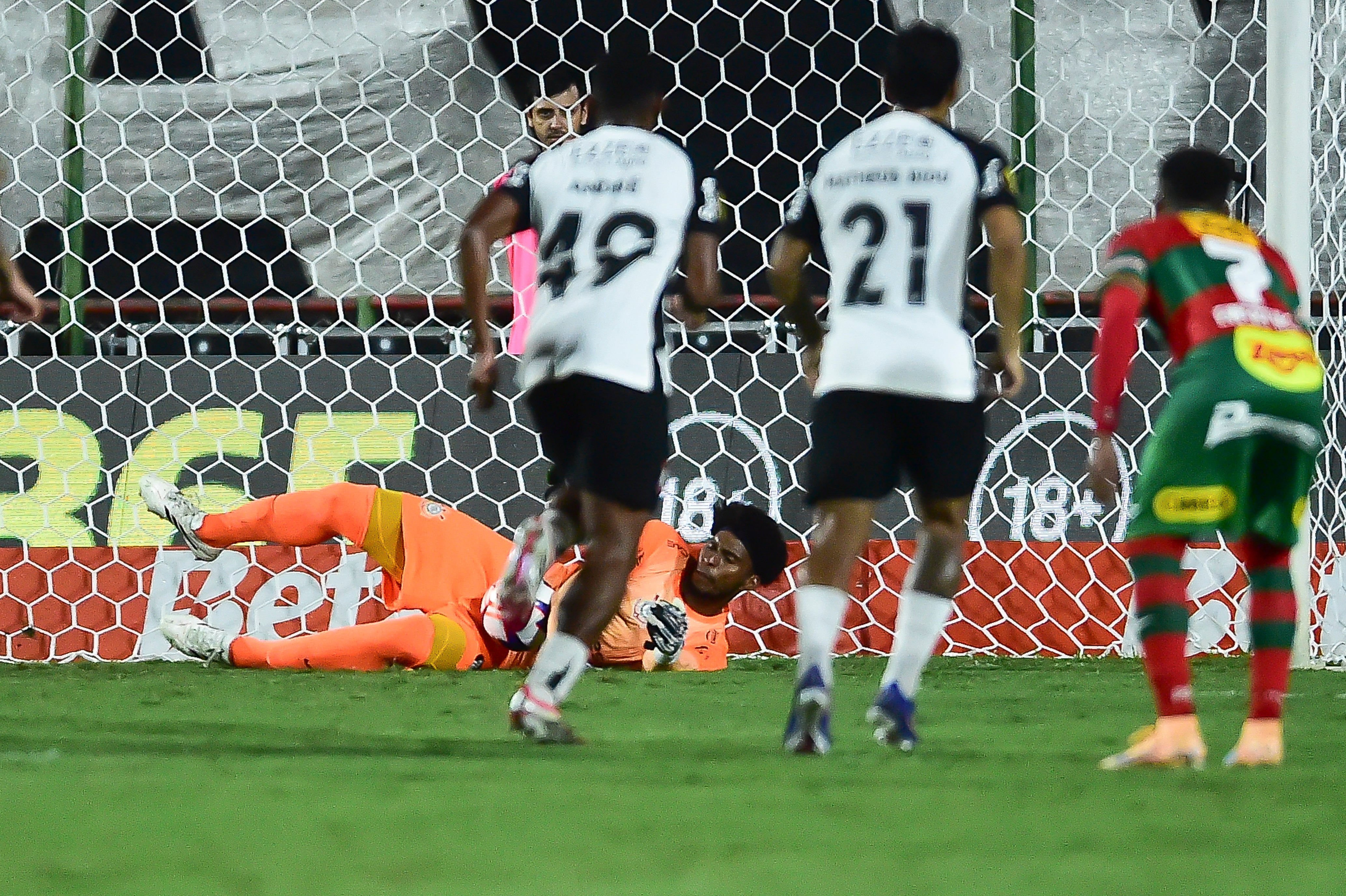 Aos 15 minutos, o time da casa levou perigo. Zé Vitor encontrou Maceió com um bom passe, e o atacante saiu cara a cara com Hugo Souza. Atento, o goleiro do Timão reagiu rápido e fez a defesa, evitando a abertura do placar. Aos 23, pênalti marcado para a Portuguesa.