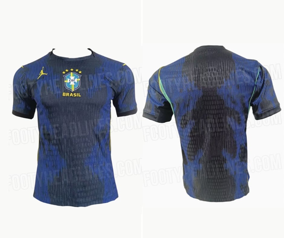 Portal Footy Headlines vaza suposta camisa número 2 do Brasil; modelo terá as cores azul e preto, além do logo Air Jordan